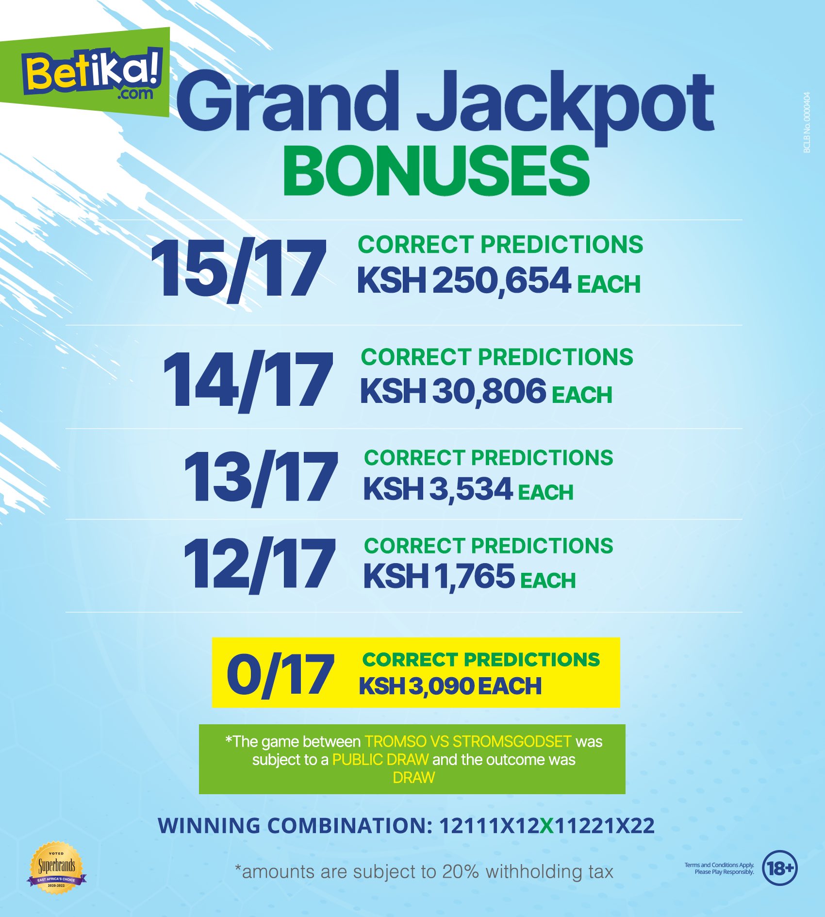 Accurate Betika Grand Jackpot predictions for this weekend are ready. The jackpot contains 17 games, bonuses start from 12 correct games, and the amount to be won is Ksh 200,000,000(Ksh 49 Stake). The previous weekend we managed to get 12/17 correct predictions which won a bonus of Ksh12k. We are right now sending 3 versions of accurate Betika Grand Jackpot predictions for this weekend via SMS plus 100% Sure Multibet of over 20 odds.