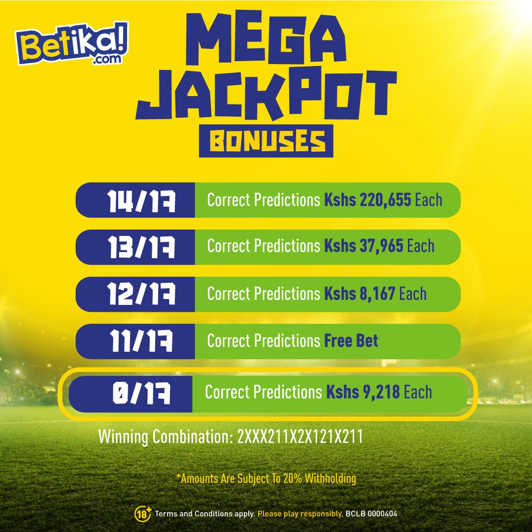 Once we receive the payment, we will send 3 accurate versions of Betika Grand Jackpot predictions for this weekend plus 100% Sure Daily Multibet of over 20 odds.