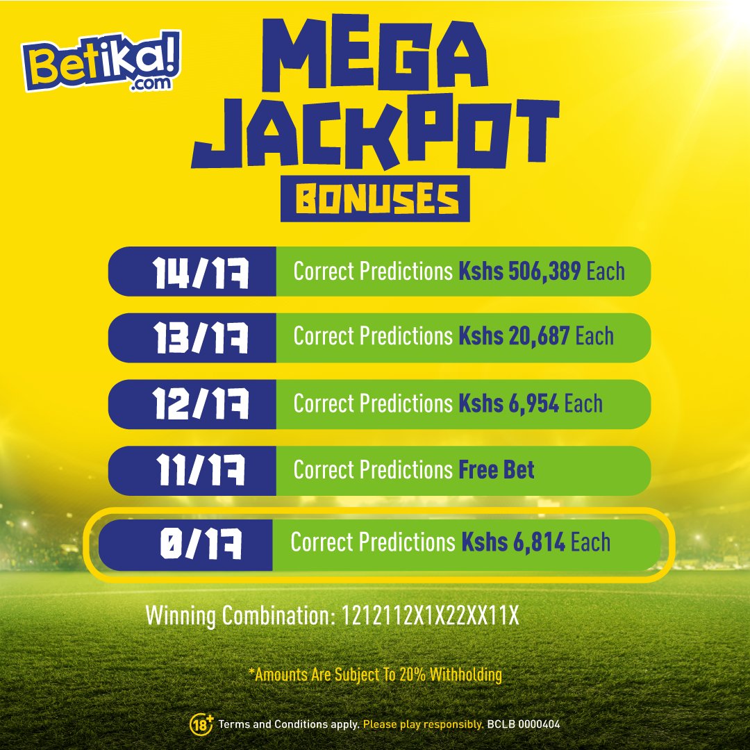 Once we receive the payment, we will send 3 accurate versions of Betika Grand Jackpot predictions for this weekend plus 100% Sure Daily Multibet of over 20 odds.