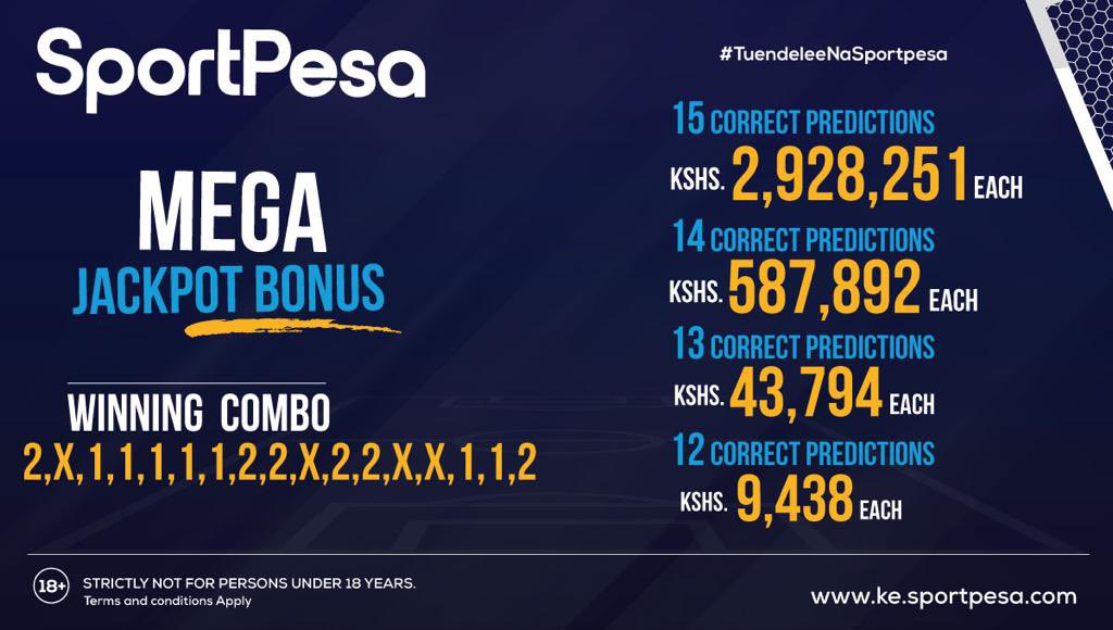 We are right now sending 3 accurate versions of Sportpesa Mega Jackpot Pro Predictions, and Betika Grand Jackpot Predictions for this weekend. Sportpesa mega jackpot cash prize amount is Ksh293.5Million and Betika Grand Jackpot prize is Ksh200M. Our target is to get at least 12/17 correct predictions on both Sportpesa Mega Jackpot Predictions + Betika Grand Jackpot predictions for this weekend.